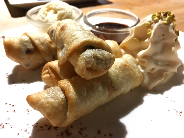 Et évidemment, que serait un passage chez Two Amigos sans un dessert ? Les copines sont fan du pizookie (cookie mi-cuit) tandis que je ne jure que par les minis chimi changas (« toujours meilleurs après la margarita » ! -ok j’avoue, en vrai je dis « c’est encore meilleur ivre ») : ces petites « crêpes » croustillantes fourrées au chocolat fondu. Oui oui, fourrées au chocolat.